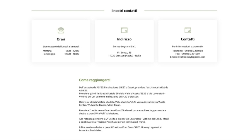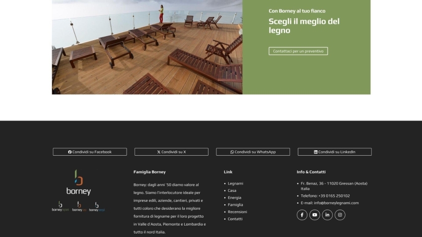 La famiglia Borney, leader nel settore del legno in Valle d’Aosta, dopo averci scelto per la realizzazione del suo precedente progetto nel 2016, ci ha nuovamente contattato per rinnovare la propria immagine online.