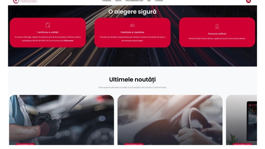 Il nuovo sito di ConformGest Romania rappresenta un fondamentale asset digitale per il consolidamento nel mercato est-europeo. È una vetrina istituzionale di alto profilo che comunica sicurezza e competenza, fungendo da solida base tecnica per le future evoluzioni tecnologiche, come il lancio dell'App dedicata e l'attivazione dei servizi di geolocalizzazione officine.