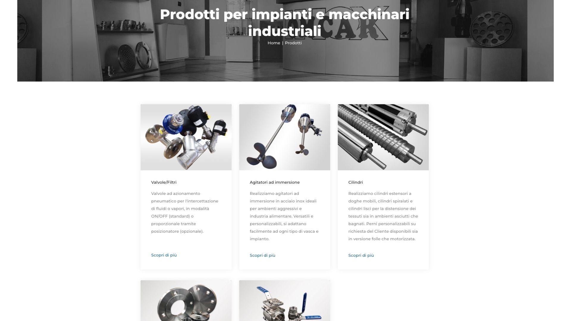 Il cuore del nuovo sito è il modulo prodotti, completamente rivisitato. Abbiamo organizzato l'ampio catalogo in categorie chiare e intuitive.